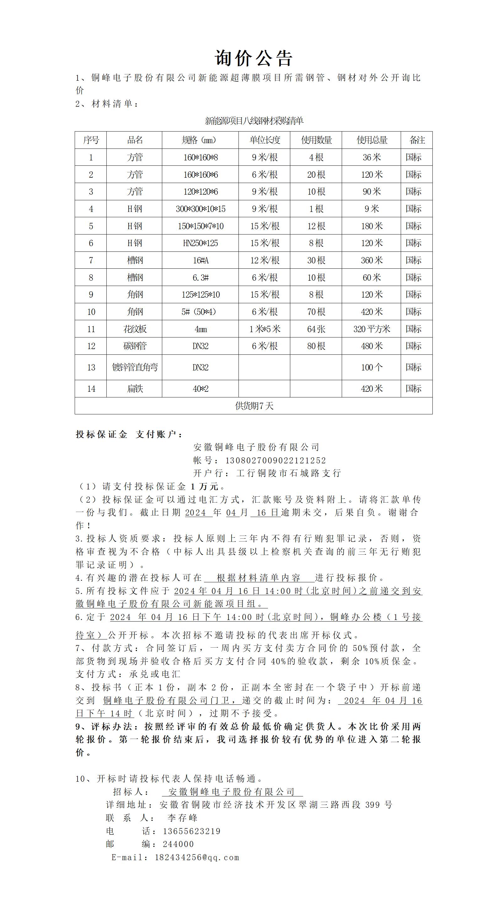 海洋之神HY590电子股份有限公司新项目八线钢材询价公告