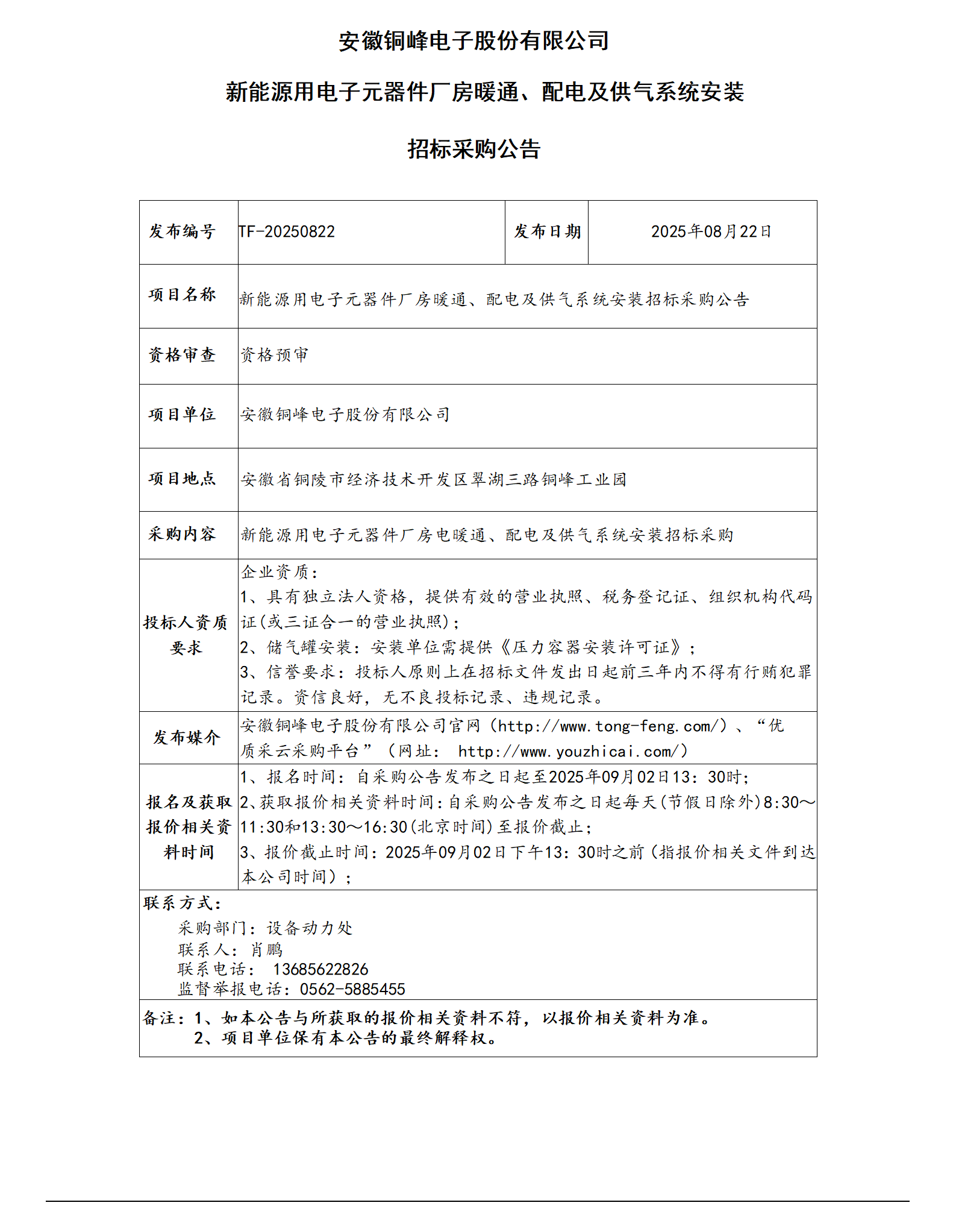 新能源用电子元器件厂房暖通、配电及供气系统安装招标公告_01