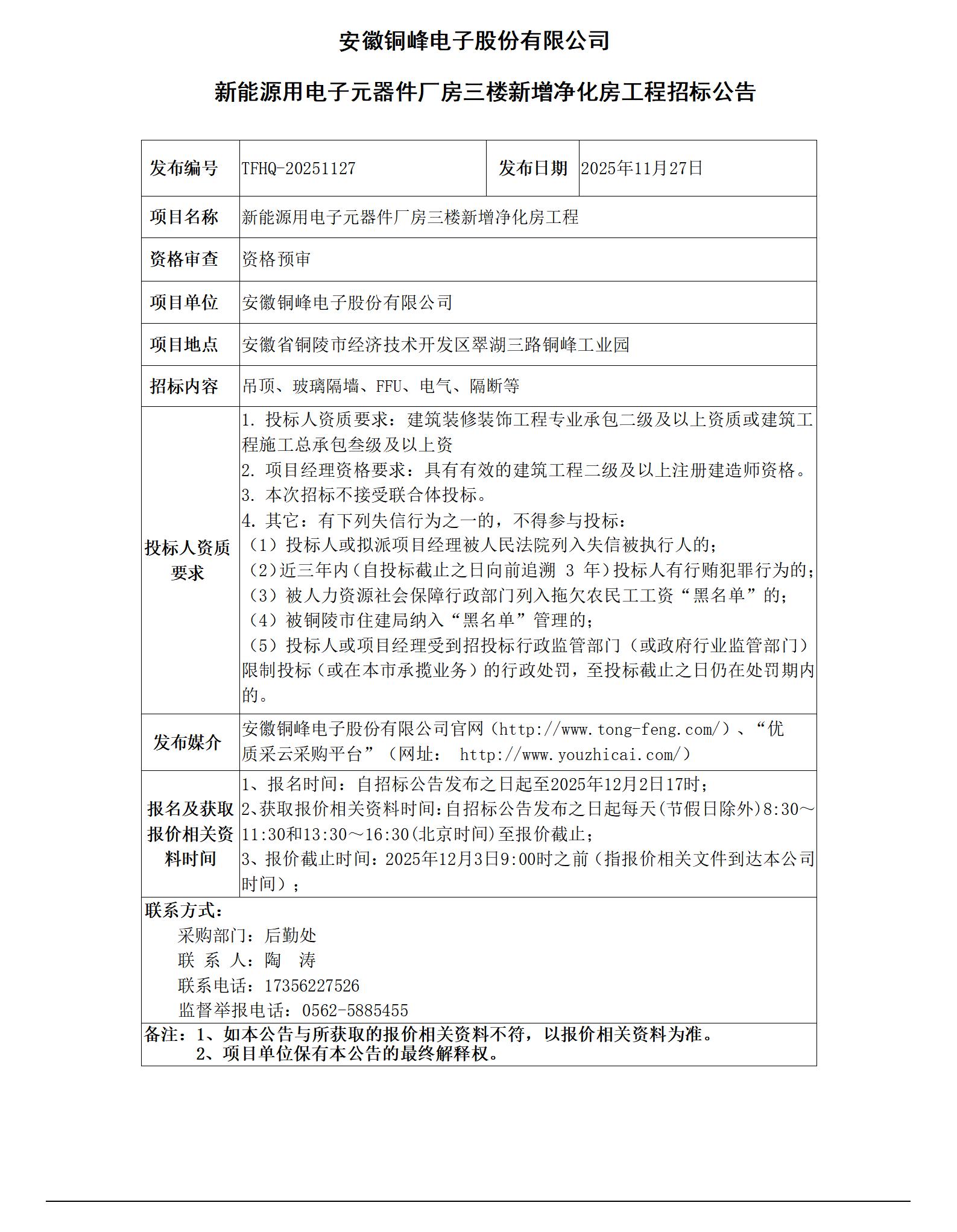 • 01安徽海洋之神HY590电子股份有限公司 (新能源用电子元器件厂房三楼新增净化房工程 招标公告)_01