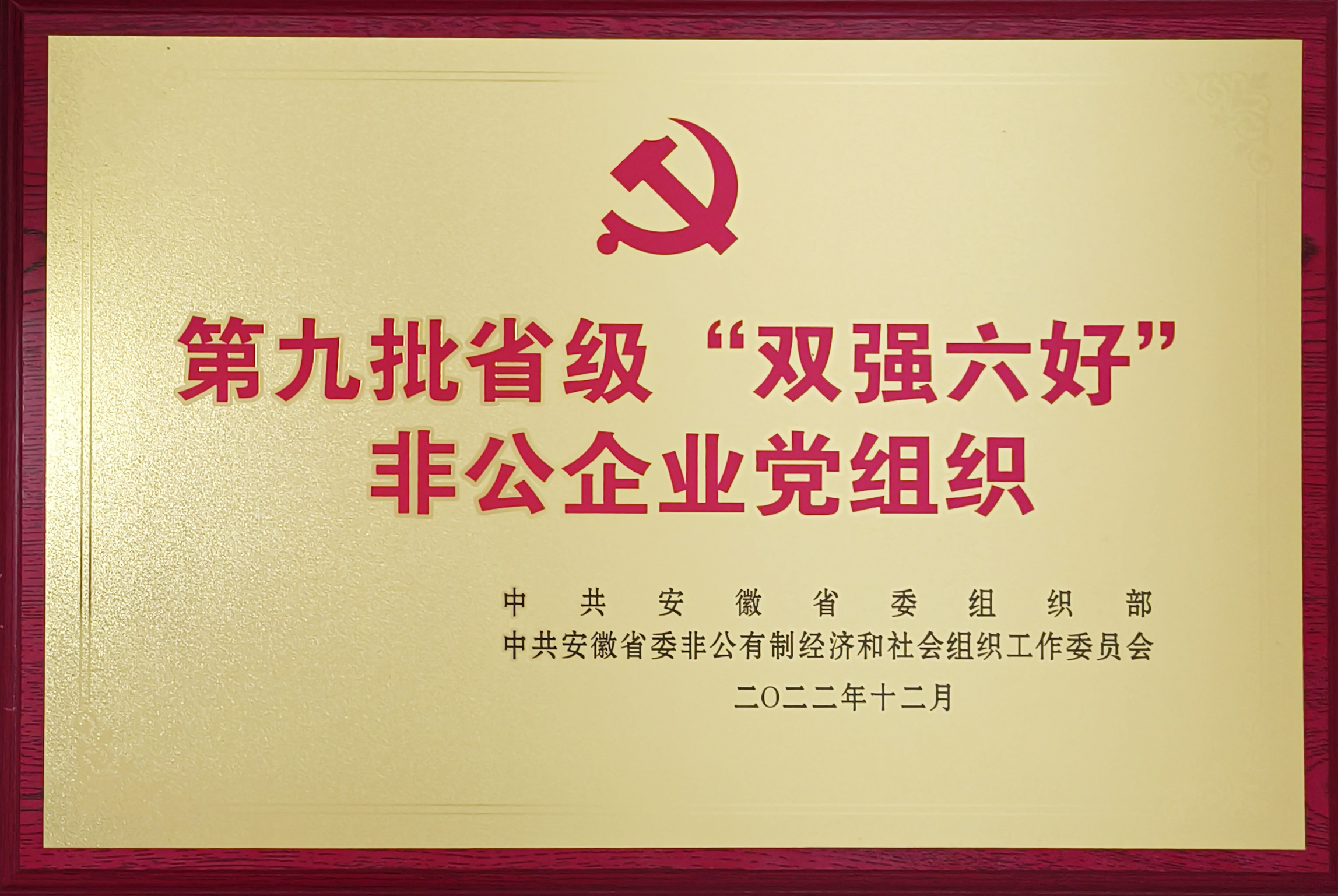 公司荣获第九批省级“双强六好”非公企业党组织