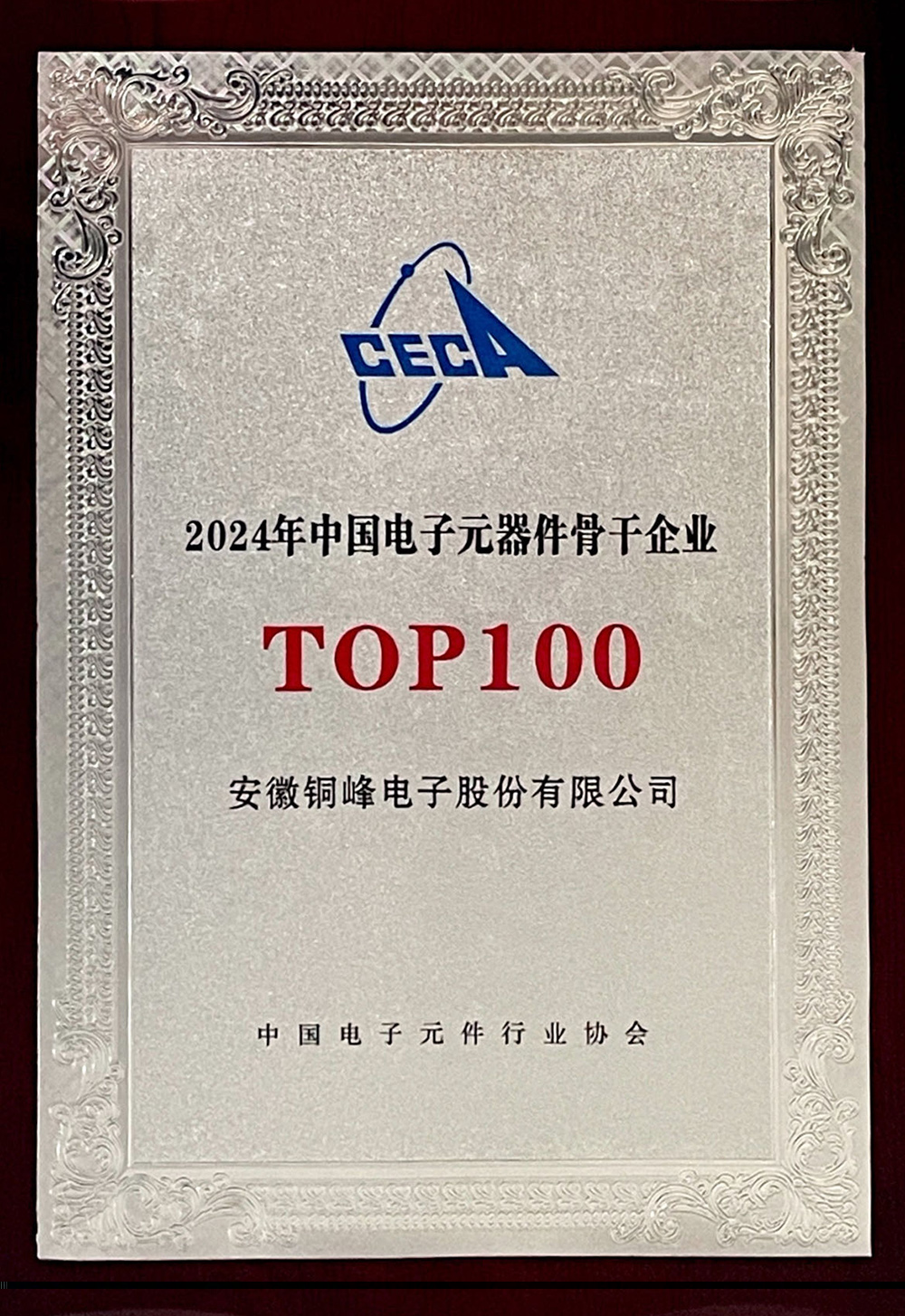 公司获评2024年中国电子元器件骨干企业TOP100荣誉称号
